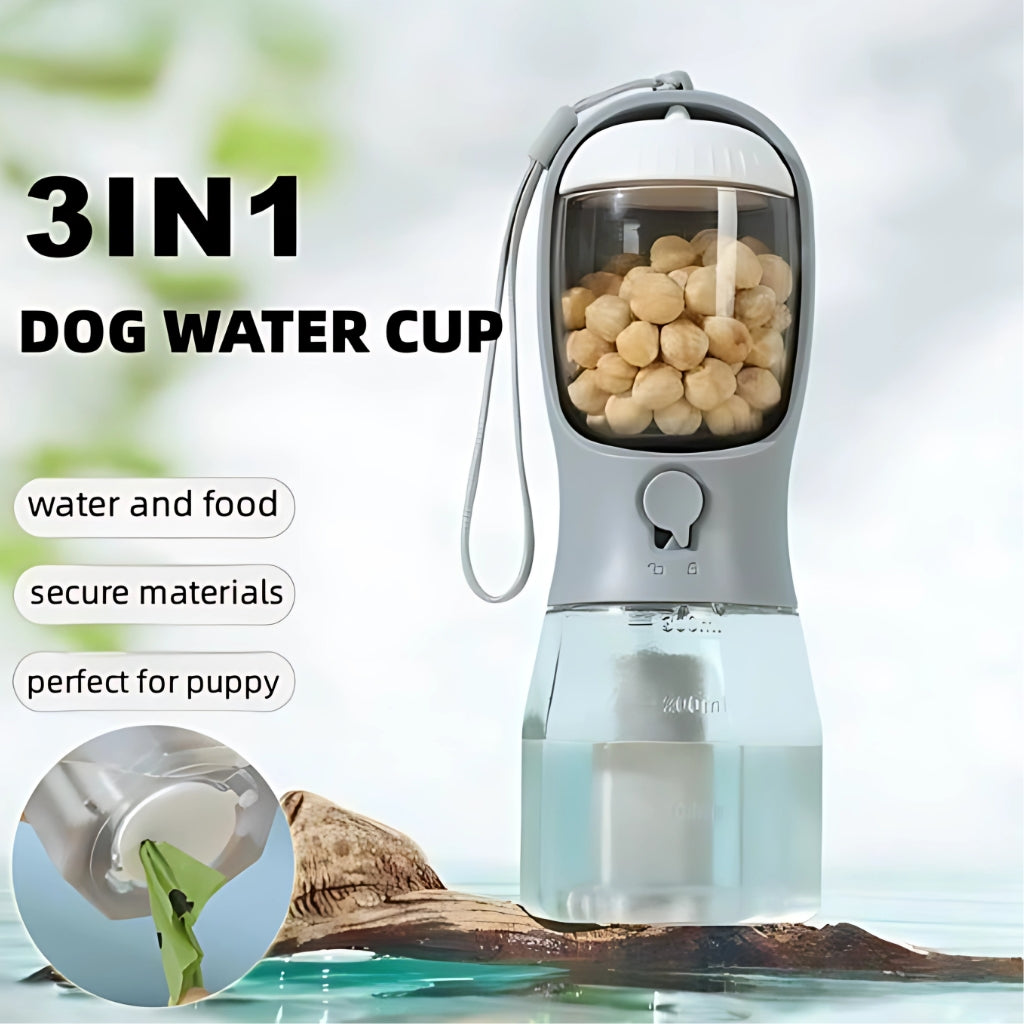 Keep your pup hydrated, fed, and cared for on the go with this 3-in-1 Dog Water Cup. Designed for travel, hikes, and everyday walks, it combines a water bottle, food container, and waste bag dispenser into one sleek and portable solution.
